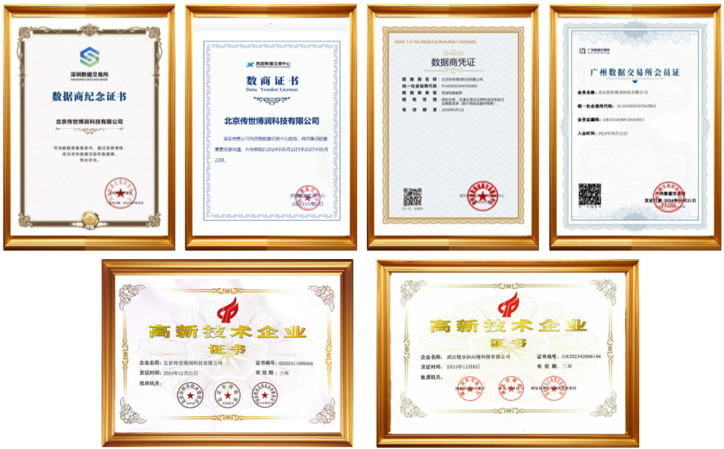 多个国家级数据交易所战略数据商,软件著作权80+,硬件专利20+,商标10+